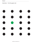 These sets of worksheets get progressively harder from the first page to the last. It is fairly easy for students to spot the correct color on the first page when it is mixed in with many black dots, but it is much harder when there are only two dots to choose from. If the student starts having problems, back up to an easier page. Work on one color at a time before introducing a new color.